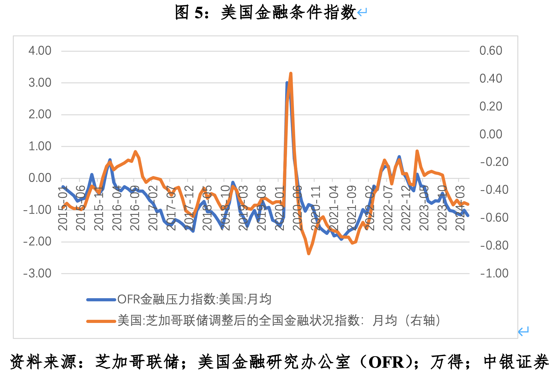 好意思联储也曾处于两难境地:前怕紧缩不及激发二次通胀的风险,后怕紧缩过度诱发经济衰败的危险。在莫得经济和金融条款降息的情况下,好意思联储通过向市集放“鸽”,推高风险偏好、压低风险溢价,换取金融条款宽松,试图让市集匡助其完成降息。5月1日的新闻发布会上,鲍威尔在阐明对去通胀发扬更有信心之前不宜降息的同期,排斥了近期加息的可能性。虽然与会者以为现在货币计策“定位细腻”,但多位官员齐展现了在必要时要进一步收紧计策的意愿。结果,4月份好意思股因市集对好意思联储紧缩态度重估全面回调,但5月份以来三大股指迭创历史新高。而好意思国金融条款指数在累计11次加息共525个基点后,重新回落至本轮加息前的水平。